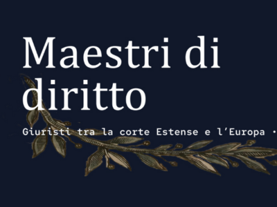 Nellambito dellattività di valorizzazione del patrimonio librario dellUniversità di Modena e Reggio Emilia si segnala la mostra virtuale Maestri di diritto. Giuristi tra la corte Estense e l'Europa. 1441-1771 frutto della collaborazione con l'Università di Ferrara.